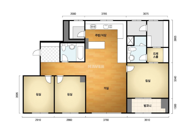 방3, 욕실2, 거실, 주방/식당, 발코니,등