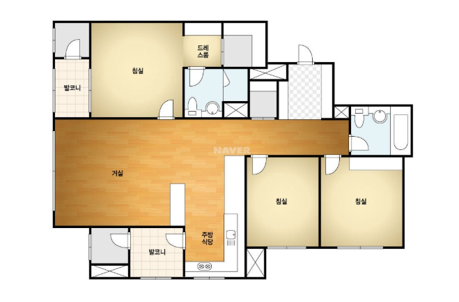 방3, 욕실2, 거실, 주방/식당, 발코니,등