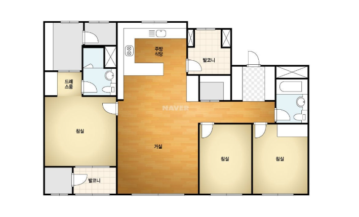 방3, 욕실2, 거실, 주방/식당, 발코니,