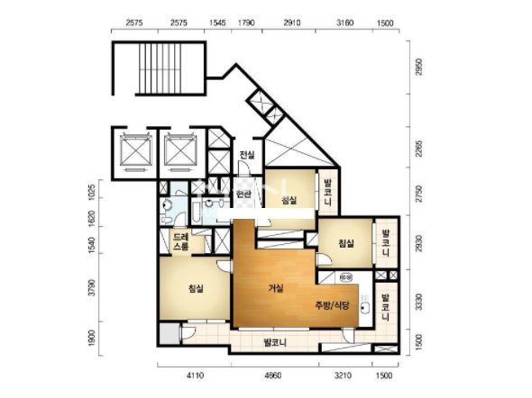 방3, 욕실2, 거실, 주방/식당, 발코니,