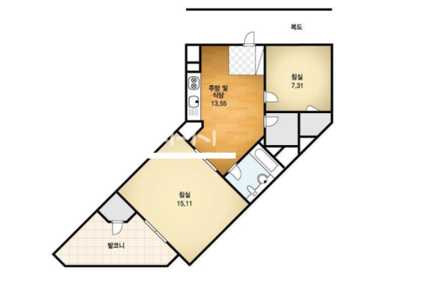 방2, 욕실1, 거실, 주방/식당, 발코니,등