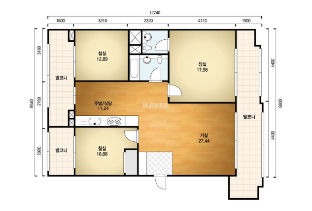 방3, 욕실2, 거실, 주방/식당, 발코니,등