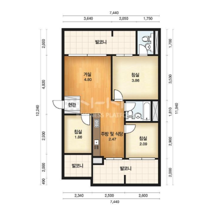 방3, 욕실2, 거실, 주방/식당, 발코니,드레스룸등