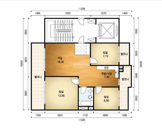 방3, 욕실1, 거실, 주방/식당, 발코니,등