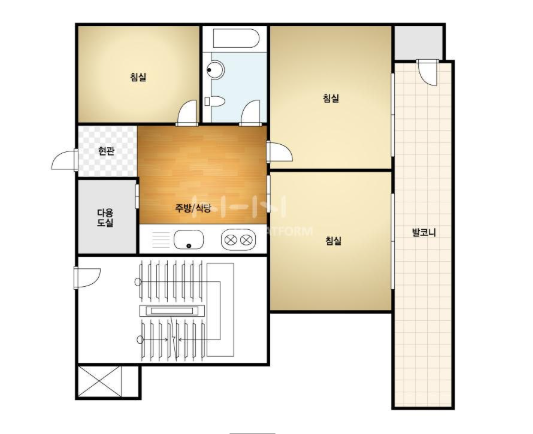 방2, 욕실1, 거실, 주방/식당, 발코니,등