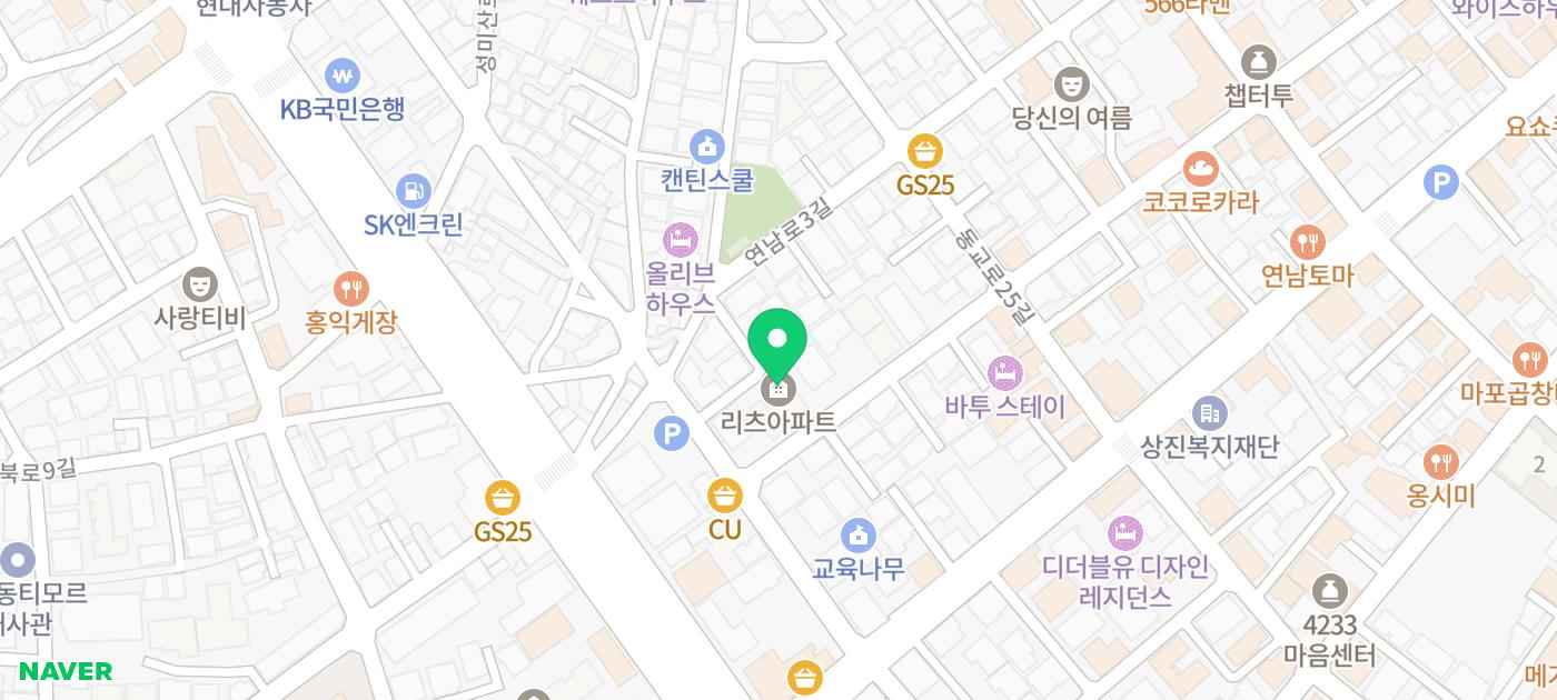 ㆍCU 연남Y빌딩점(45m) ㆍGS25 연남SCG점(107m) ㆍGS25 뉴연남제일점(123m) ㆍGS25 서교임오점(130m) ㆍGS25 서교본점(258m) ㆍ미니스톱 동교스텔라점(263m) ㆍGS25 동교타운점(264m) ㆍGS25 연남타운점(266m) ㆍ이마트24 마포성산점(287m) ㆍ이마트24 서교미래점(297m)