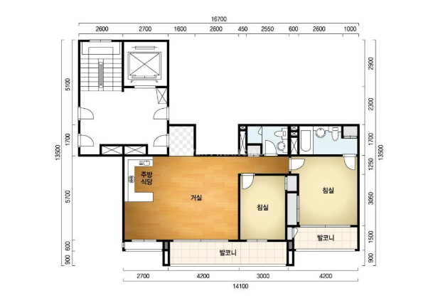 방2, 욕실2, 거실, 주방/식당, 발코니,등
