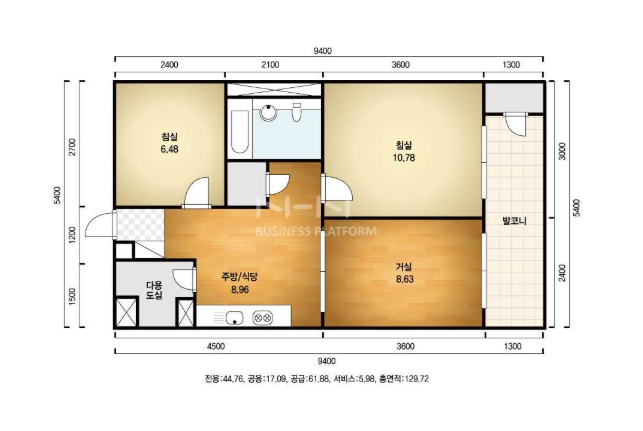 방2, 욕실1, 거실, 주방/식당, 발코니,등