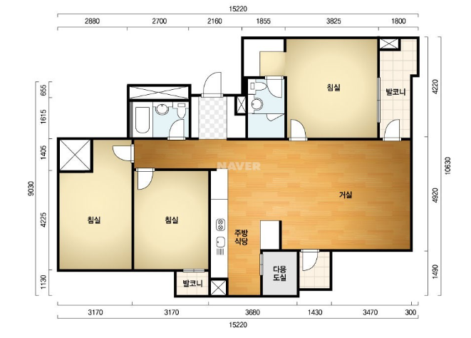 방3, 욕실2, 거실, 주방/식당, 발코니,등