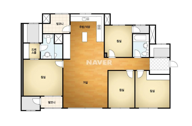 방3, 욕실2, 거실, 주방/식당, 발코니,