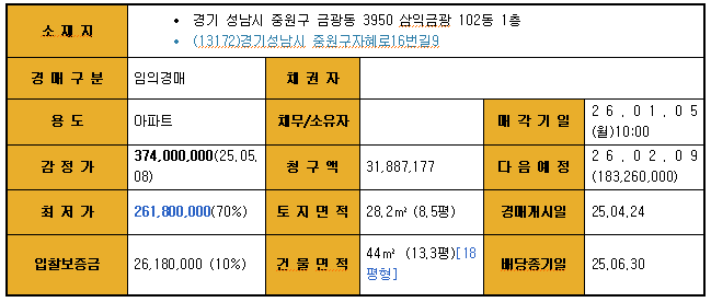 | 경기 성남시 수정구 단대동 124 ,125,128 진로 106동 1층 (1) | 2026.02.19 |