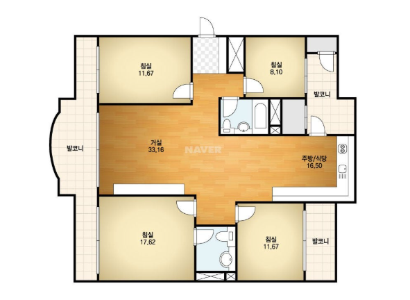방4, 욕실2, 거실, 주방/식당, 발코니,등