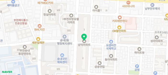 ㆍ대우삼익공인중개사사무소(88m) ㆍ탑부동산(187m) ㆍ인하찹쌀순대(256m) ㆍ솔밭공인중개사사무소(275m) ㆍ등대공인중개사사무소(275m) ㆍ낙원진갈비 부천점(296m) ㆍ신이조곱창 송내본점(305m) ㆍ송내어울마당 아리솔갤러리(346m) ㆍ부천문화원(352m) ㆍ송내어울마당 솔안아트홀(352m)