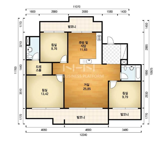 방3, 욕실2, 거실, 주방/식당, 발코니,