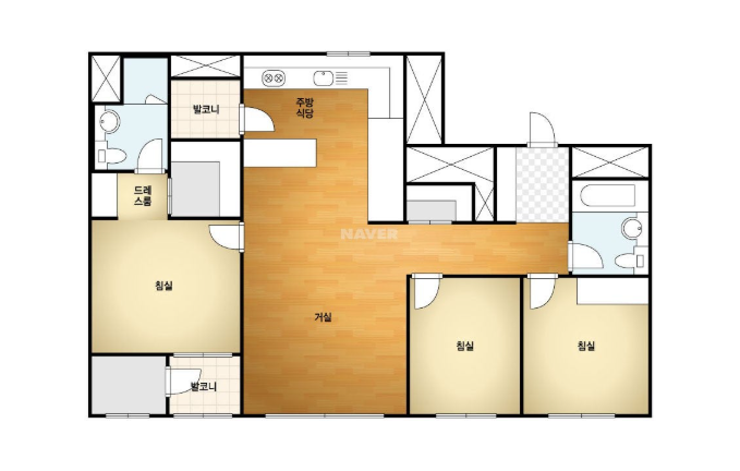 방3, 욕실2, 거실, 주방/식당, 발코니,등