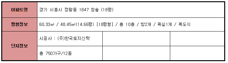 ☆시화청솔 아파트 단지 정보☆
