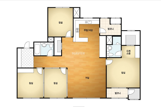 방3, 욕실2, 거실, 주방/식당, 발코니,