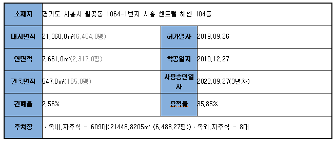 ☆시흥센트럴헤센 아파트 건축물현황☆