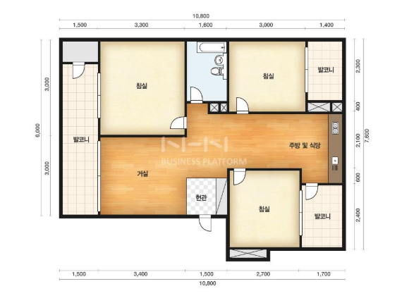 방3, 욕실1, 거실, 주방/식당, 발코니,등