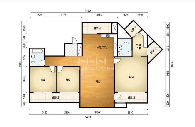 방3, 욕실2, 거실, 주방/식당, 발코니,