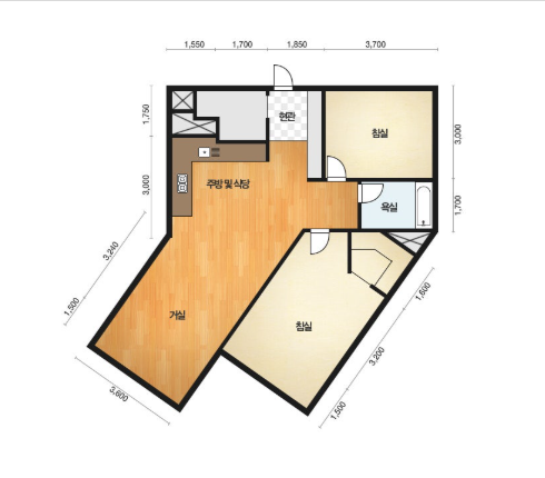 방2, 욕실1, 거실, 주방/식당, 발코니