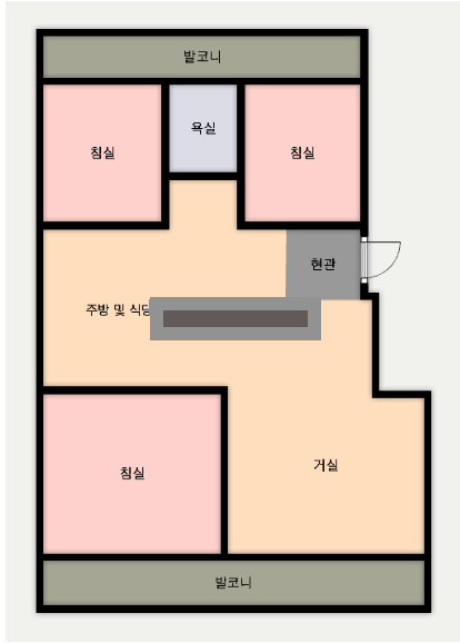 방3, 욕실1, 거실, 주방/식당, 발코니,등