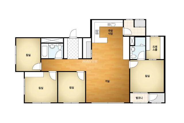 방3, 욕실2, 거실, 주방/식당, 발코니,