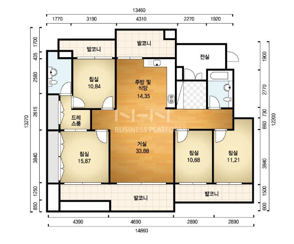 방4, 욕실2, 거실, 주방/식당, 발코니,