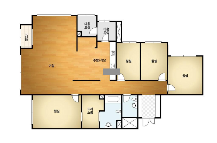 방4, 욕실2, 거실, 주방/식당, 발코니,